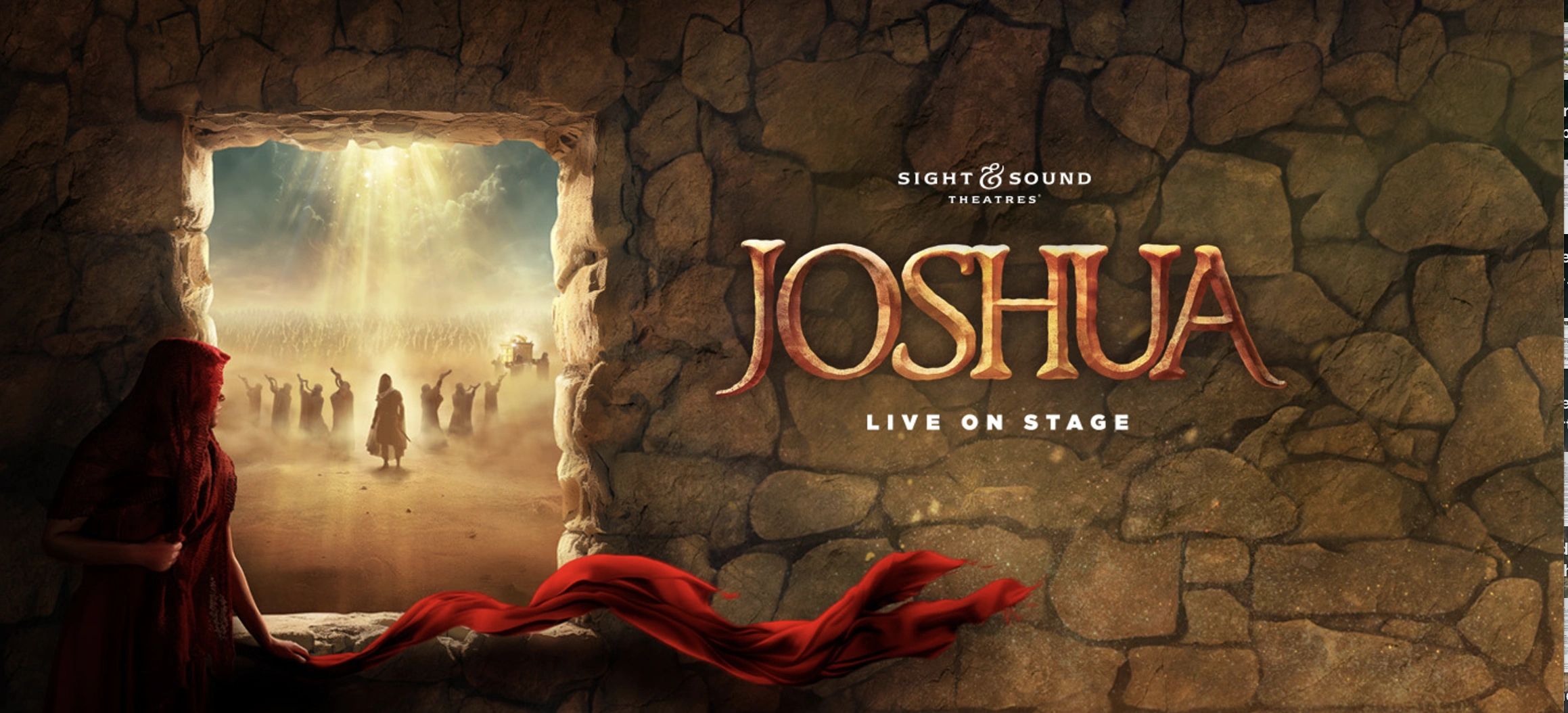 Experience the miraculous story of Joshua from the Jordon River to the walls of Jericho. We have excellent seats!